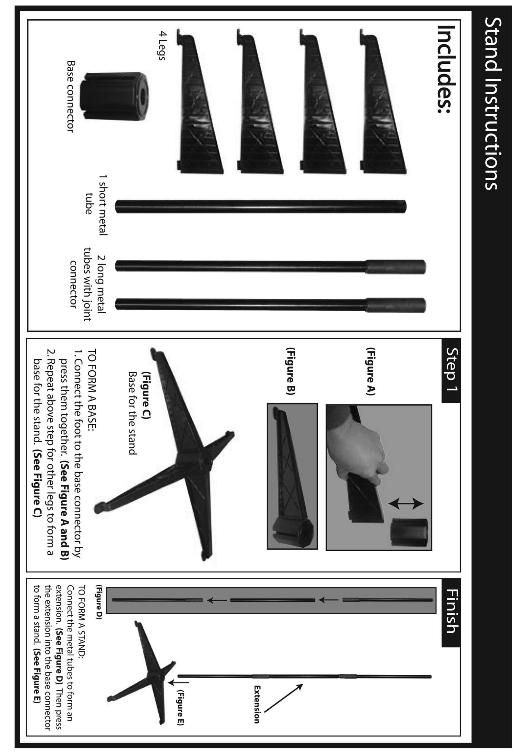 - Stand has metal poles with plastic connection pieces and plastic feet that attach at base of stand