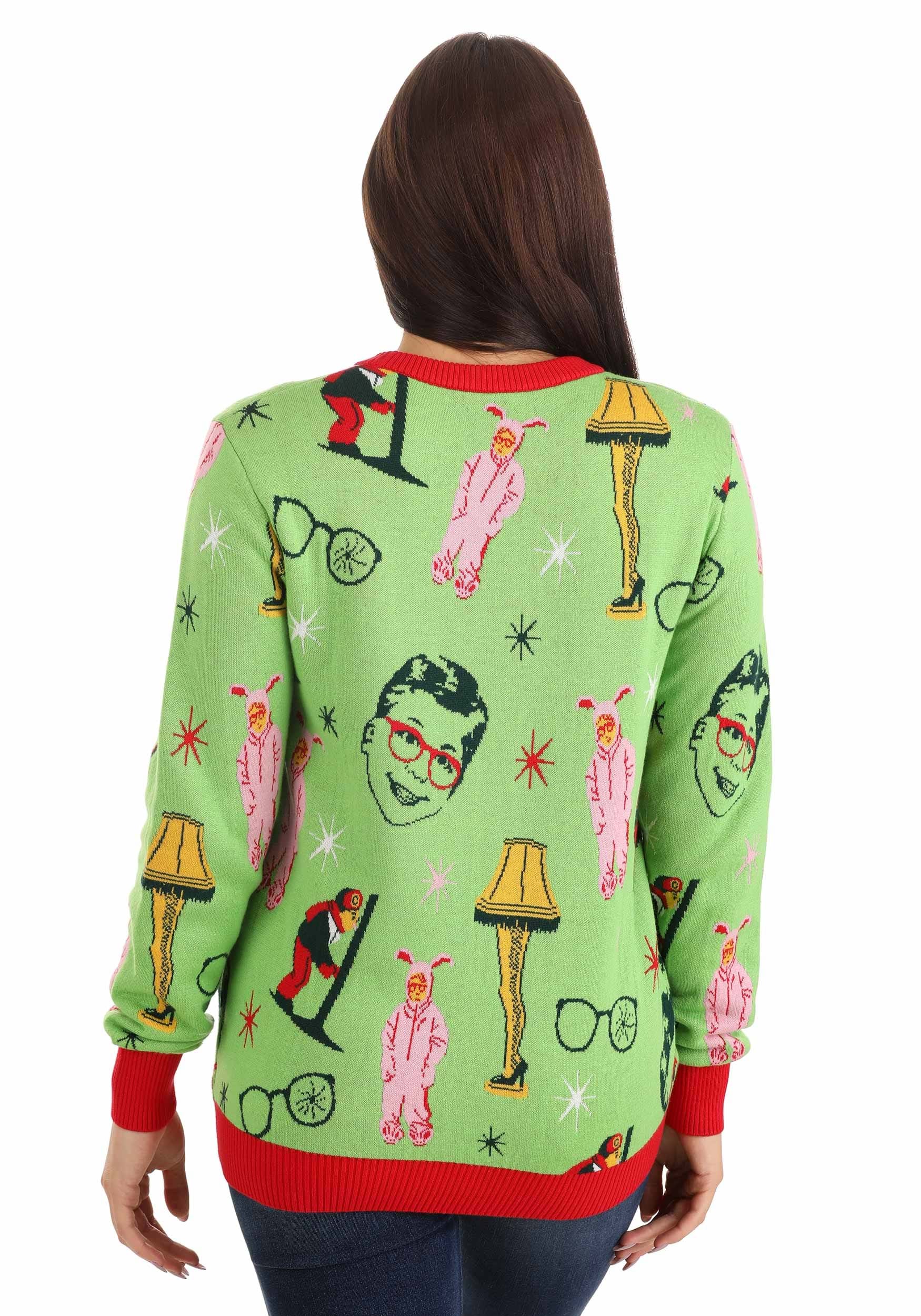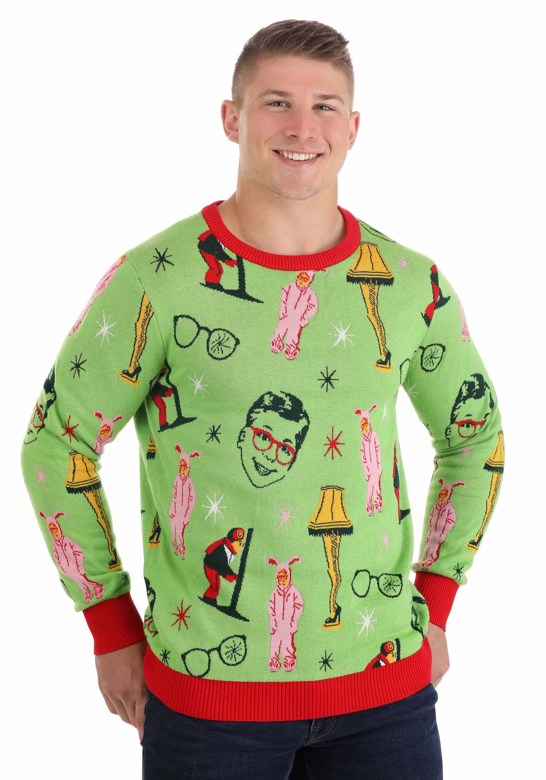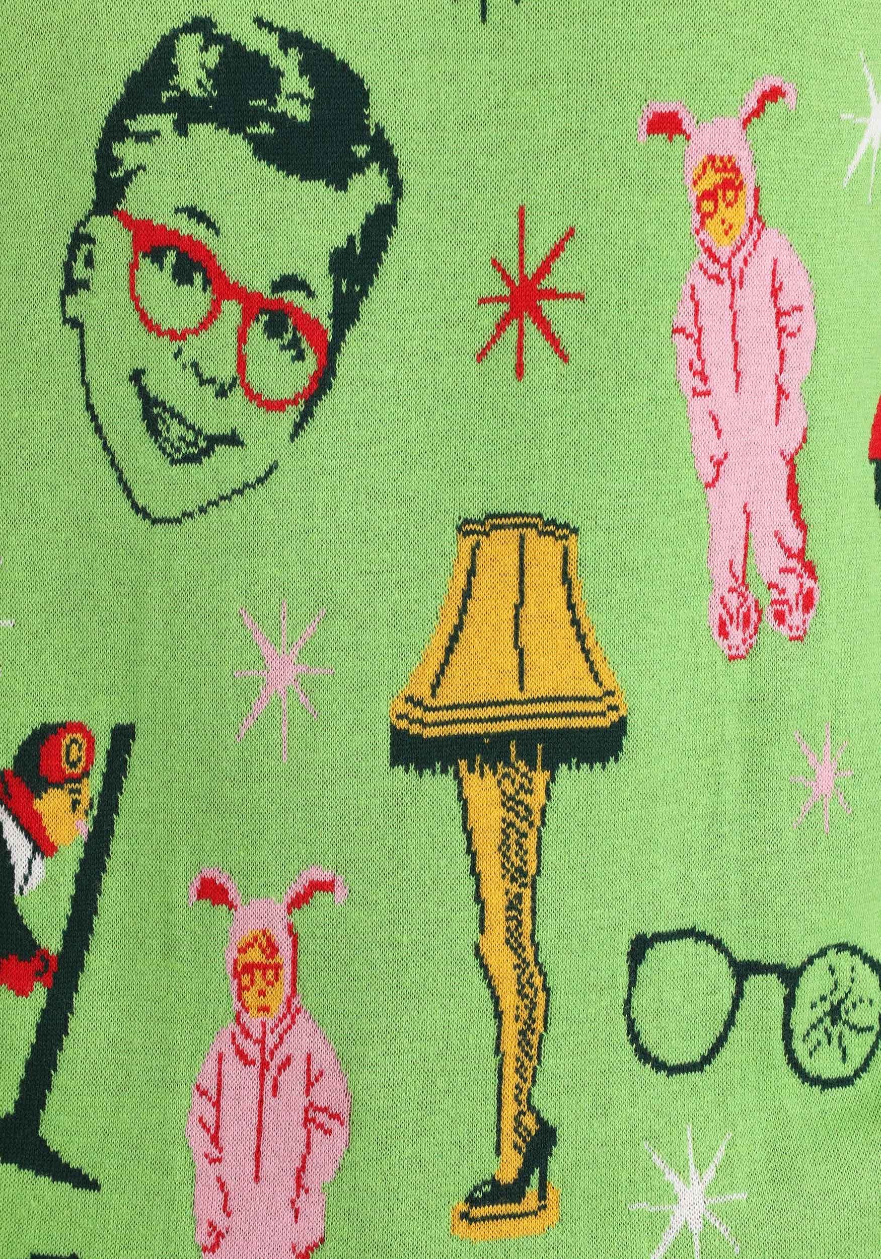 This Adult A Christmas Story Ugly Sweater brings the classic Christmas movie to life with a colorful design inspired by classic scenes. The sweater design features Ralphie's face, the infamous bunny suit, dad's leg lamp, and cracked pair of glasses. The knit sweater is made out of an acrylic and cotton blend. It also features rib knitting around the cuffs, the neck, and the waistband. You can toss it on while you watch that annual Christmas movie marathon, or give it as a much safer gift option than a Red Rider BB Gun!
