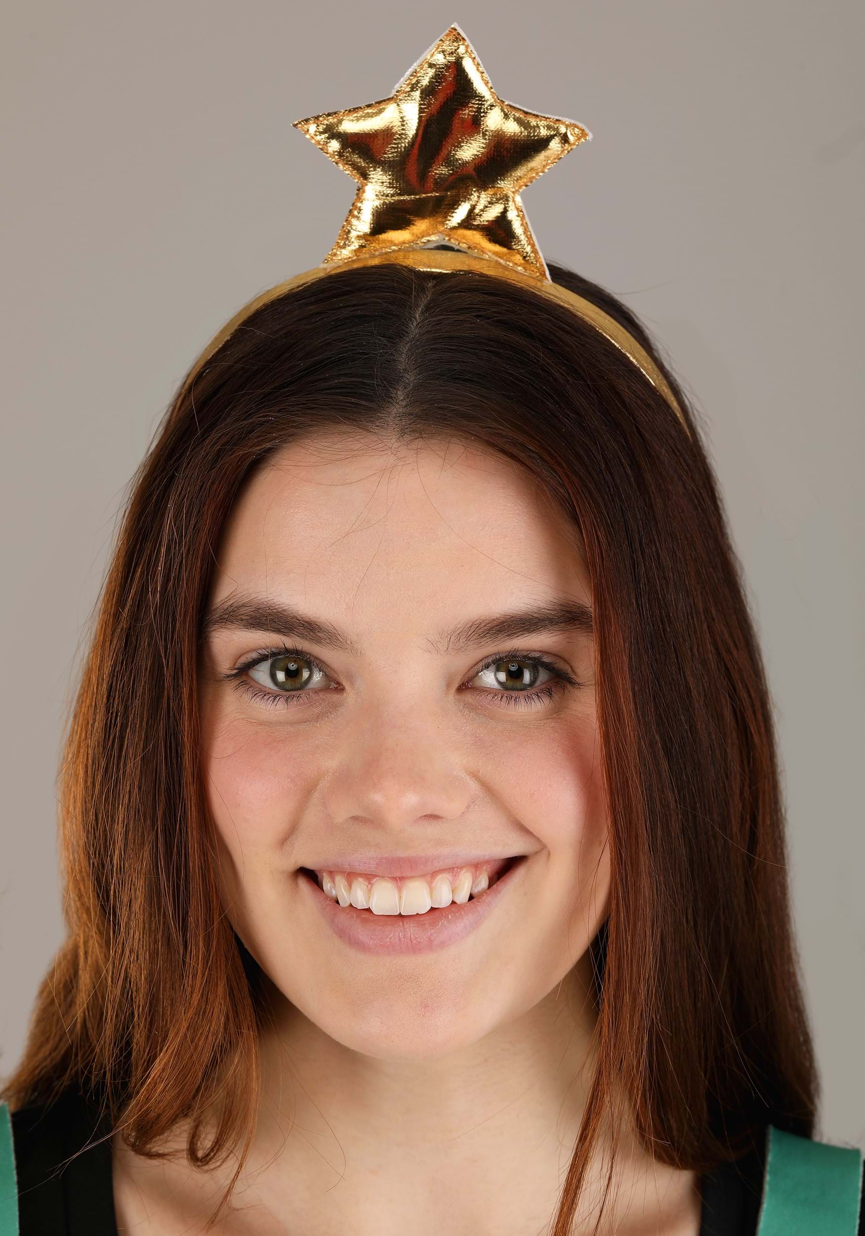 - Metallic gold faux leather star is attached to fabric covered plastic headband