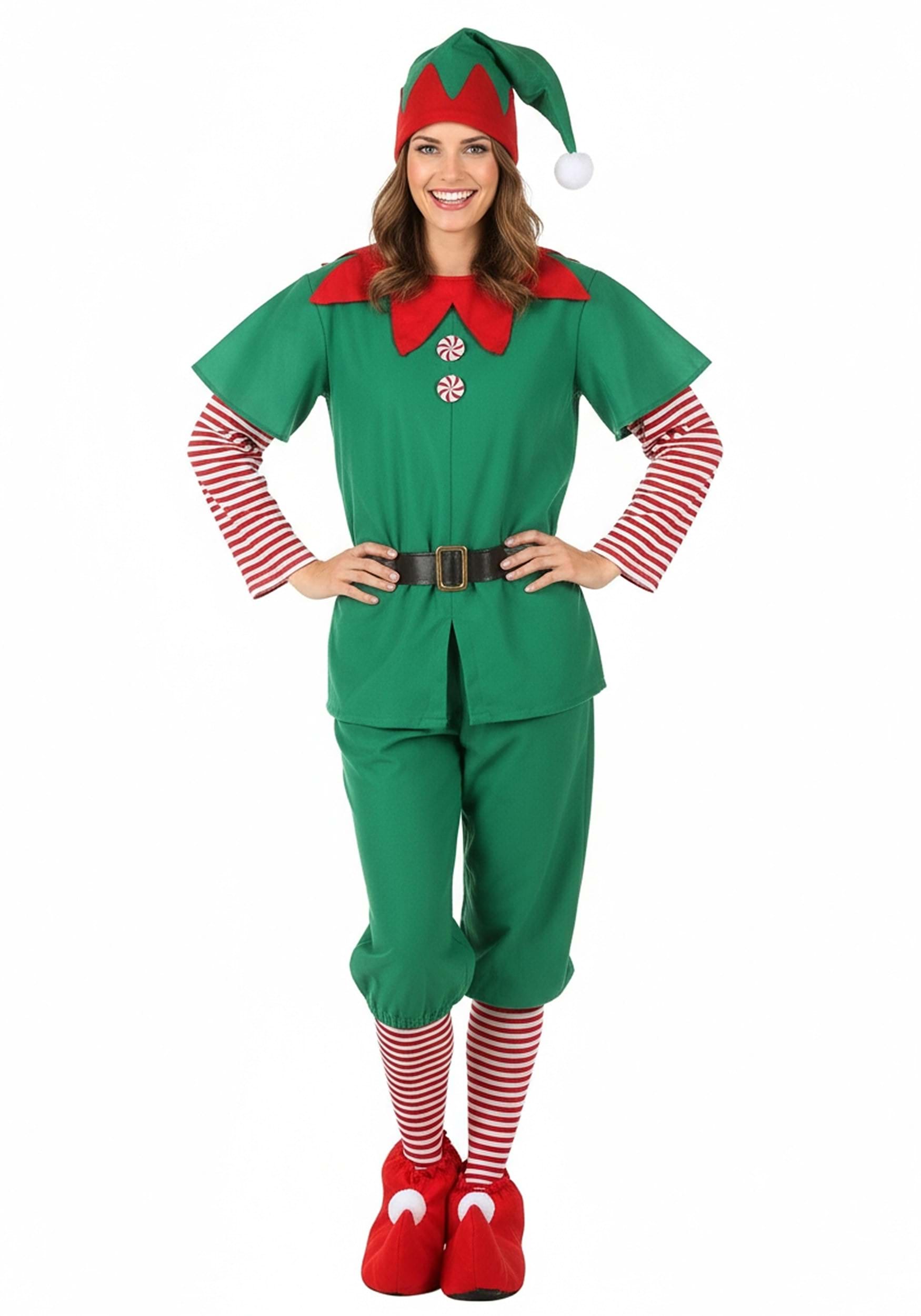 For instance, if you particularly enjoy the stories of Mr. Kris Kringle, perhaps you want to dress up as one of his industrious helpers: an elf. Our Adult Elf Costume has a brushed flannel shirt with back zipper and pants with elastic waistband. There's red and white striped lower sleeves and stretch knit stockings in the same pattern. There's a faux leather belt with plastic buckle, a cone-shaped hat with pompom, and curl-toed booties with more pompoms. You'll look like the quintessential holiday elf in this outfit! Which will be very impressive and festive. Probably more festive than everyone else who is not in a costume. So please, show them how it's done.