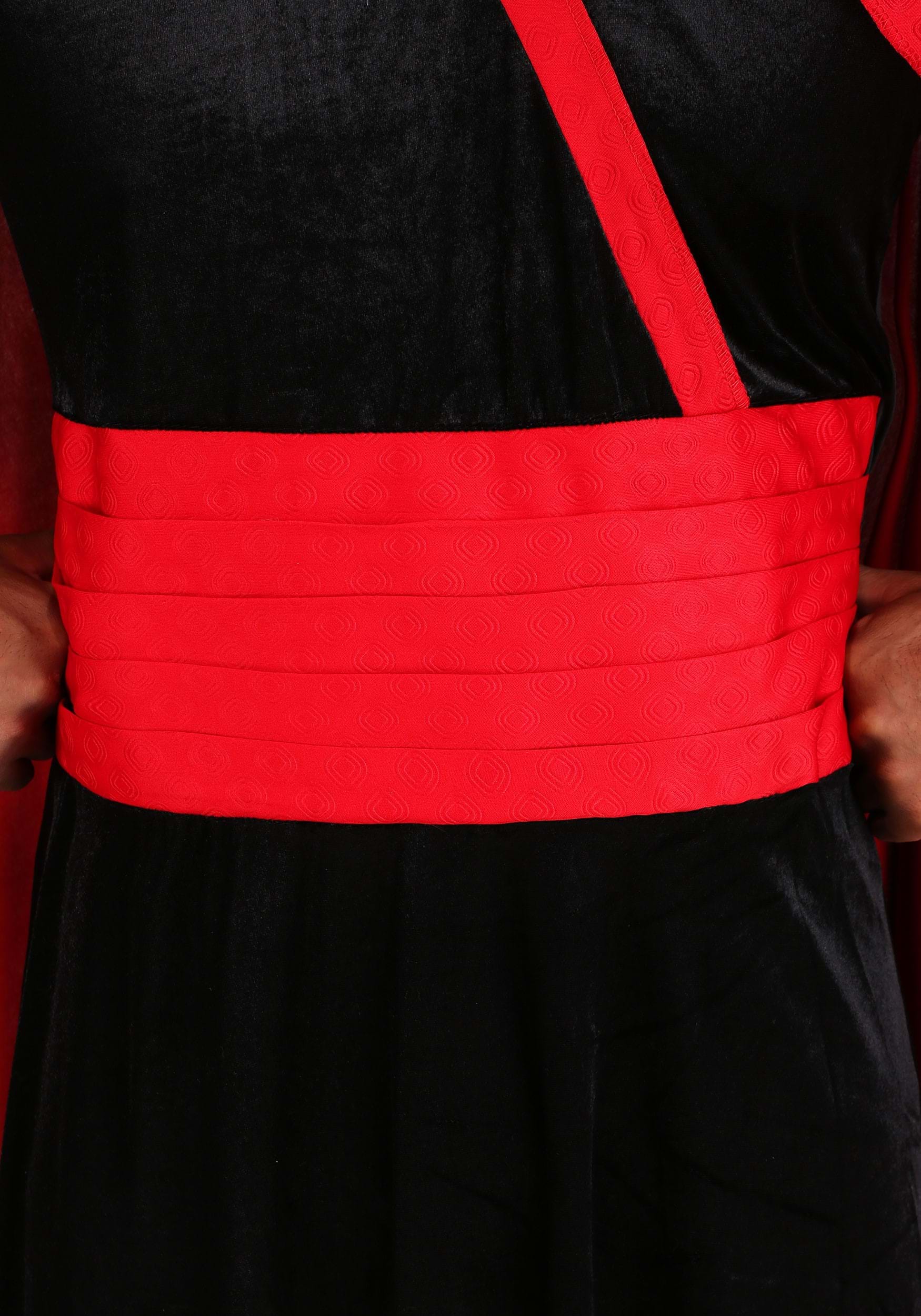 See if you can work some magic and get a bit further than the infamous Disney villain in this officially licensed Jafar costume from Aladdin. This ensemble is a rich costume with an authentic-looking color scheme of red and black. The robe fastens with hook and loops in the back for easy wear and has detailed faux designs in the front to make it look like a real robe.