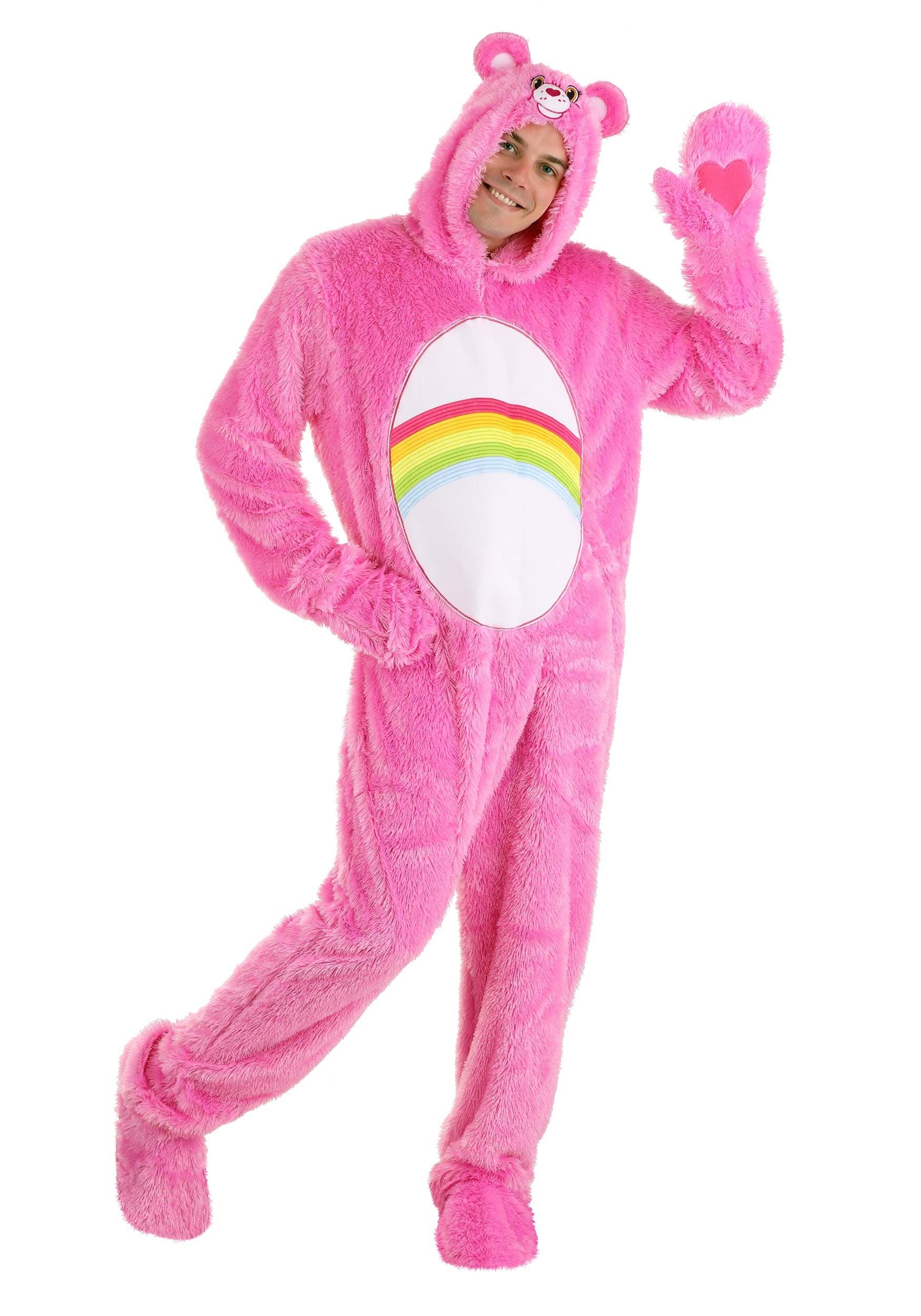 If you're feeling that your day (or someone else you know) is facing a day that is going from mediocre to disastrous, it is time to reach for your Care Bears costume. Cheer Bear is perpetually cheery and this costume is undeniably luxurious, so wearing it to stop your bad day dead in its tracks is a promising plan. Known for being positively perky and optimistic, Cheer Bear is incapable of having a bad day. Nip your potentially bad day right in the bud by suiting up in this officially licensed jumpsuit. The bright pink fur and attached hood and mitts spark a smile. Once the coordinating shoe covers are slipped over your shoes, you'll start to feel that bad day stress melt away. Look in the mirror to see the rainbow belly badge reflecting back and speed up the cheerful process.