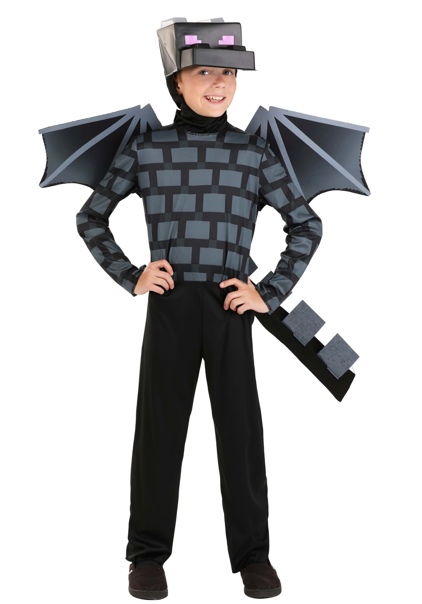 Your child will be rip-roaring ready to fly in this officially licensed Minecraft Classic Ender Dragon Kids’ Costume! Everything they need to be an authentic harbinger of Minecraft doom is included in this costume. You get a black block-detailed jumpsuit, a felt tail with block “spines,” and the signature wings, made of foam. The plastic dragon headpiece slips on over the jumpsuit’s black hood for a comfortable fit. You can see its purple eyes seeking out its next unsuspecting target! Best of all, it's officially licensed -- so don't sweat the details with this one.