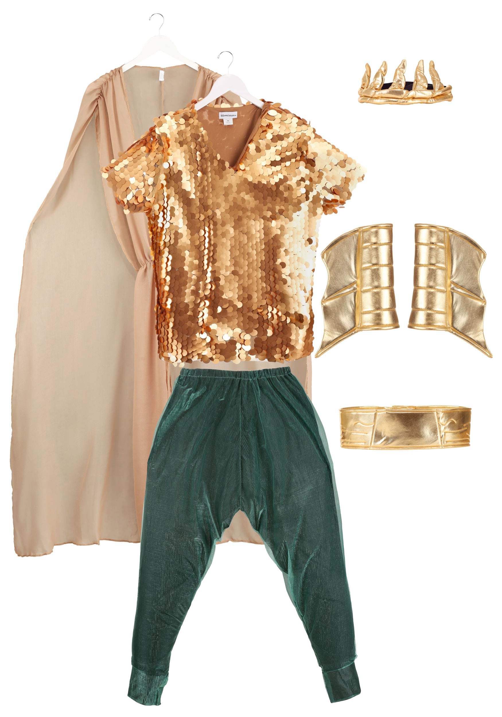- Main body: 100% polyester, pants: 100% nylon, crown, belt, and wrist cuffs: 95% polyester, 5% spandex