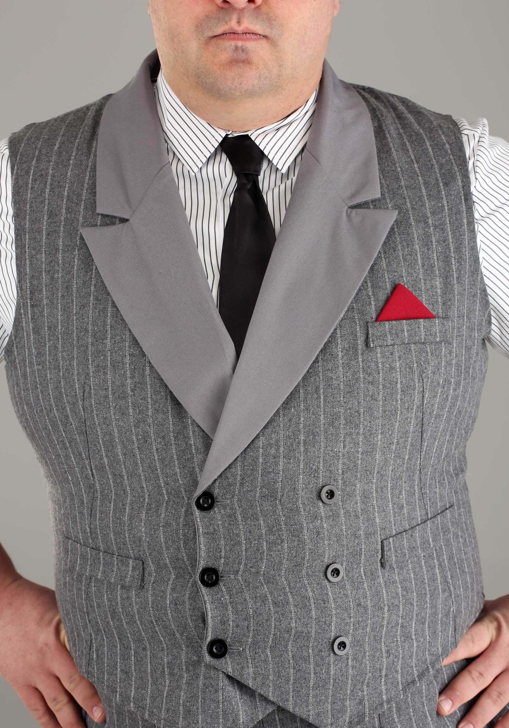 The outfit includes a pre-tied satin necktie with an elastic neckband for easy wear, making sure you stay sharp all night long. The vest features three false pocket welts and a sewn-in pocket square for extra vintage flair. Just add a fedora (not included), and you'll be the most dapper gangster in town!