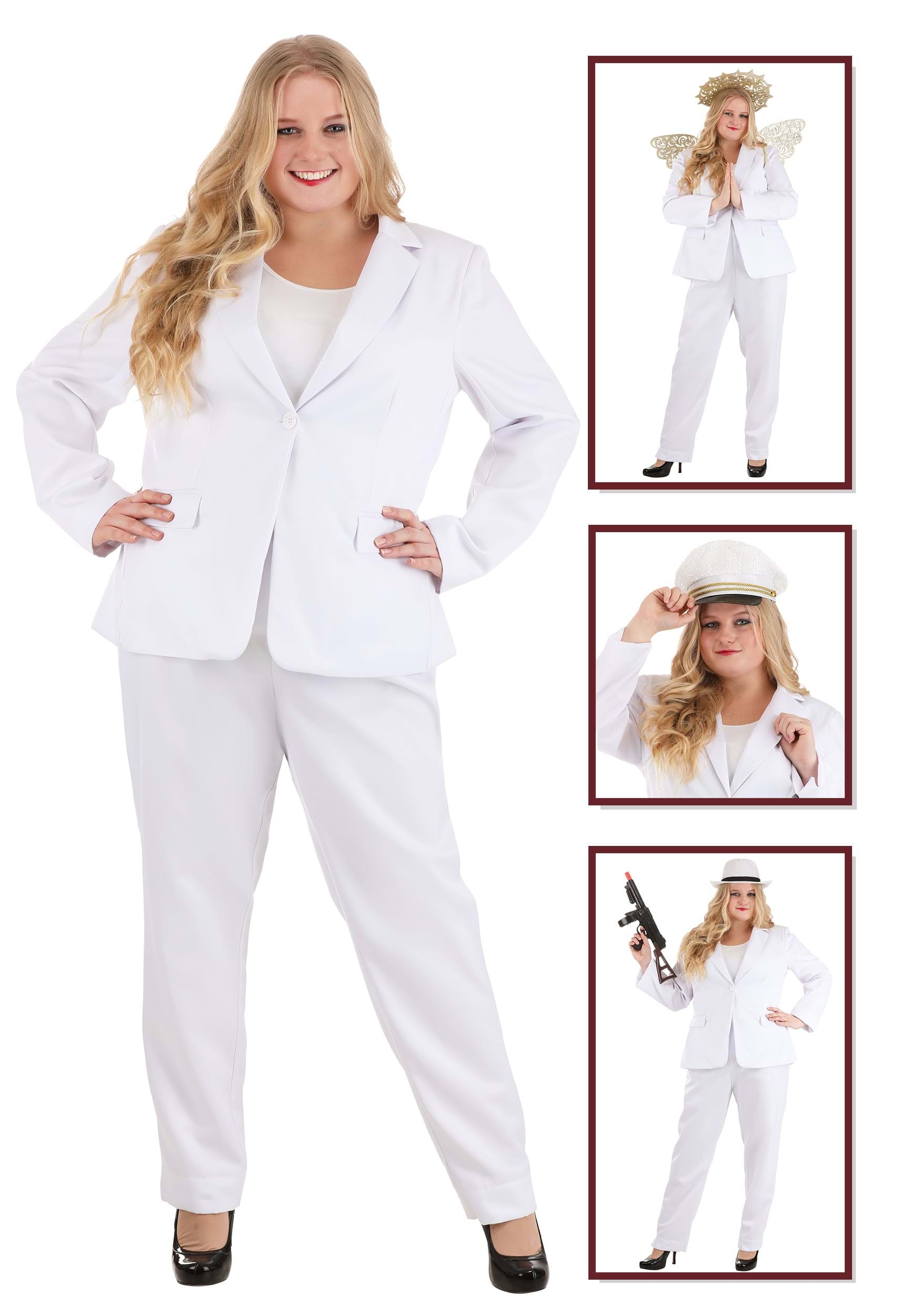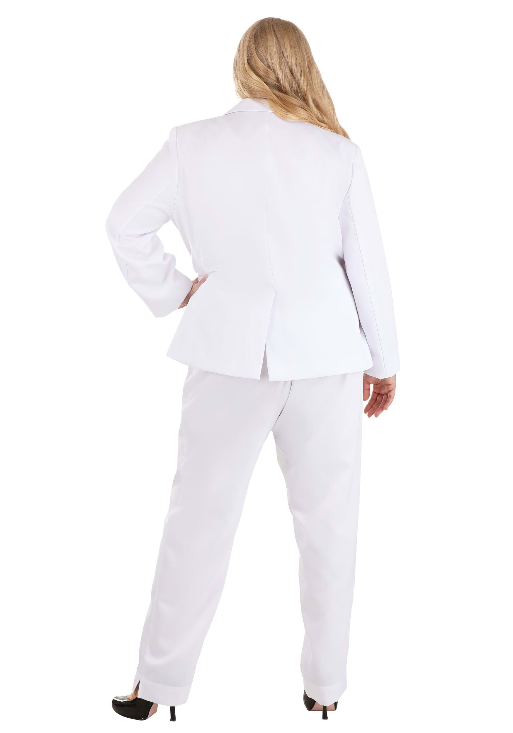 This is an exclusive Women's Plus Size White Costume Suit.