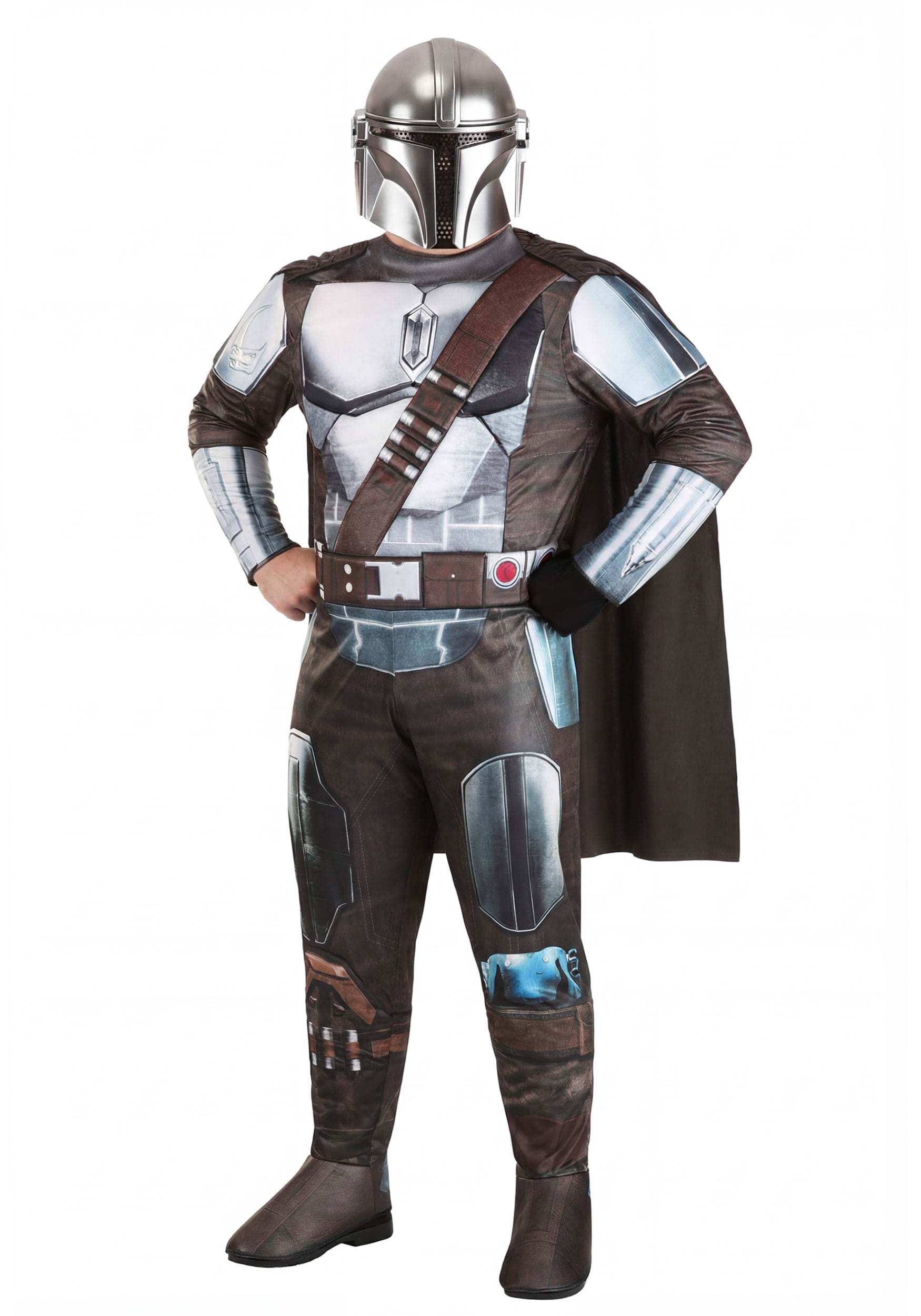 Inspired by one of the greatest warriors of the Star Wars universe, The Mandalorian Costume will have you prepared for anything! The costume comes with a jumpsuit that uses a combination of printed details and Qualux material to recreate the look of his signature armor set. The suit has silver metallic colors that mimic the look of Beskar Steel and printed belts to give you a single piece to make you feel like a true Mandalorian.