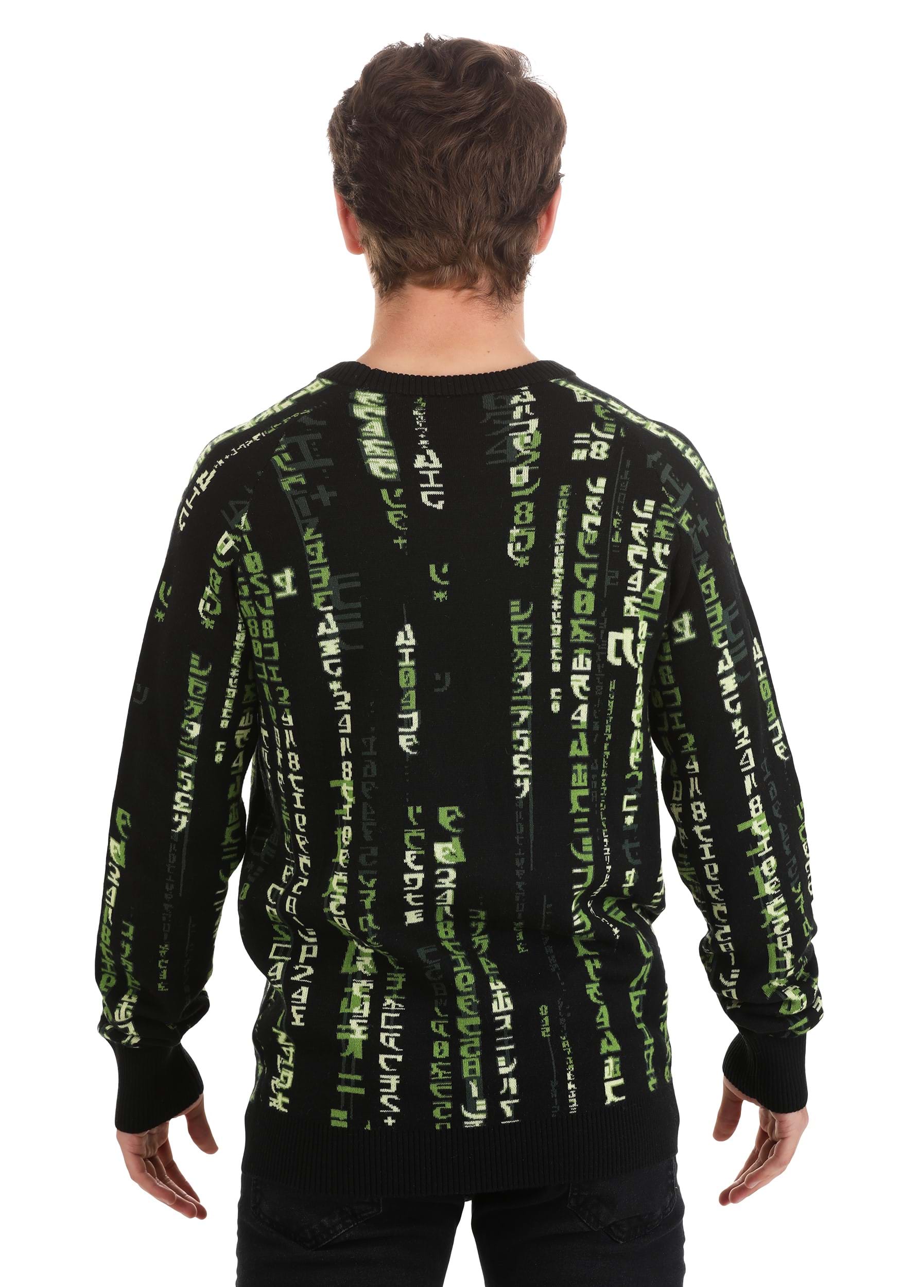 The falling rain effect of the visual Matrix code wowed audiences when the first movie debuted, and the imagery of the digital code has become a bit of a pop culture icon. From computer screensavers to countless imitations, it's instantly recognizable anytime you see it. So, we figured it's about time to feature it on an amazing piece of apparel! This Matrix Code Adult Sweater shows off the cool green characters of the code in amazing ugly sweater styling.