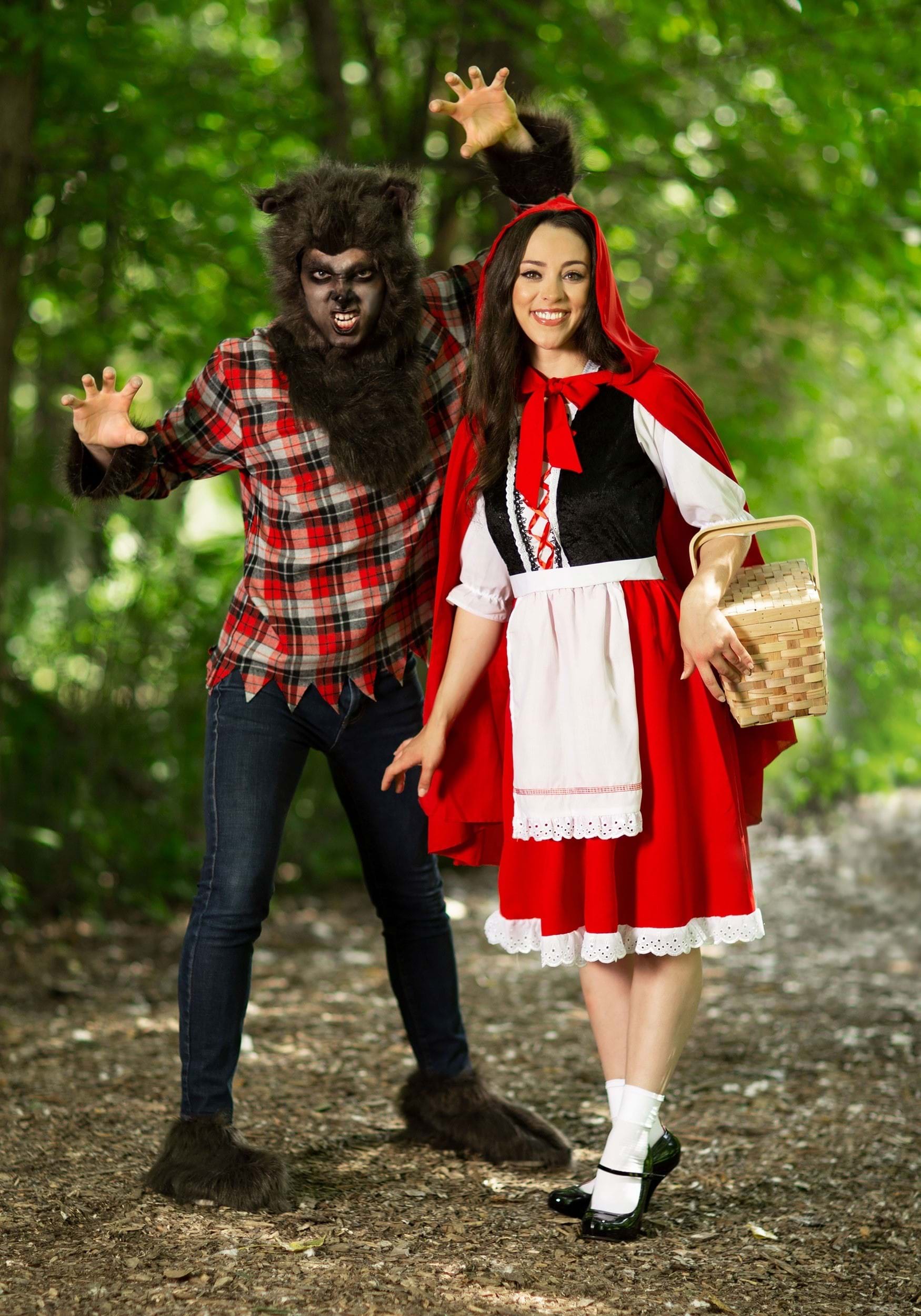 The dress is styled as Little Red’s classic vest, skirt, apron over a white peasant blouse--spot on! The “vest” is crafted of black velvet and boasts ribbon lacing, while the red poplin skirt has a peek of white eyelet edging. We can see why you think this look is better than all the others! You look absolutely perfect. Of course, you also get the iconic red hooded cape to accompany your journey out in the urban jungle, tonight; but knowing you, you will take the long way through the woods to get to your pal’s party--because having Red swipe her transit card on the subway just doesn’t do this classic look justice!